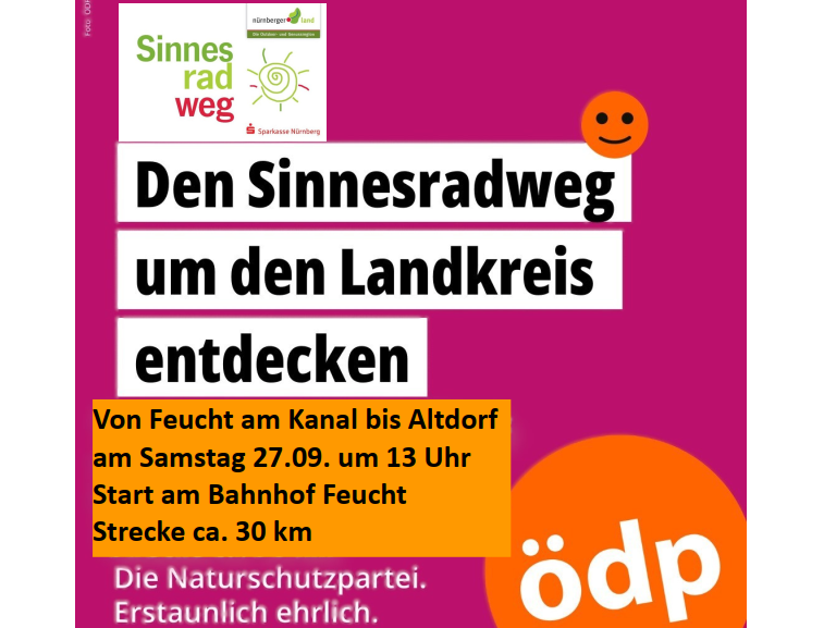 Einladung zur Tour auf dem Sinnes-Radweg Nürnberger Land am Samstag: 27.09.2025