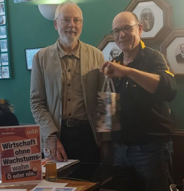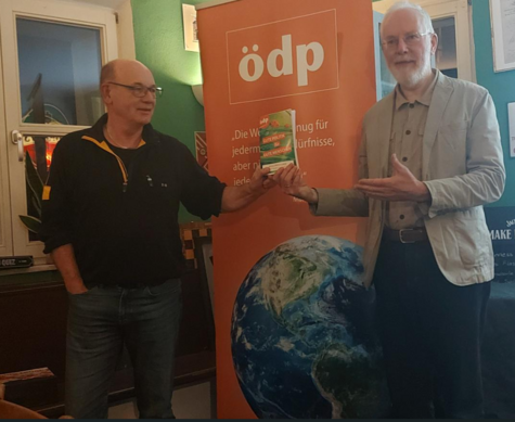 Walter Stadelmann (Kreisvorsitzender und Kreisrat) wurde für „25 Jahre Mitgliedschaft“ in der ÖDP geehrt. Nach einer kurzen Laudatio überreichte der stellvertretende Vorsitzende eine kleine Aufmerksamkeit.
